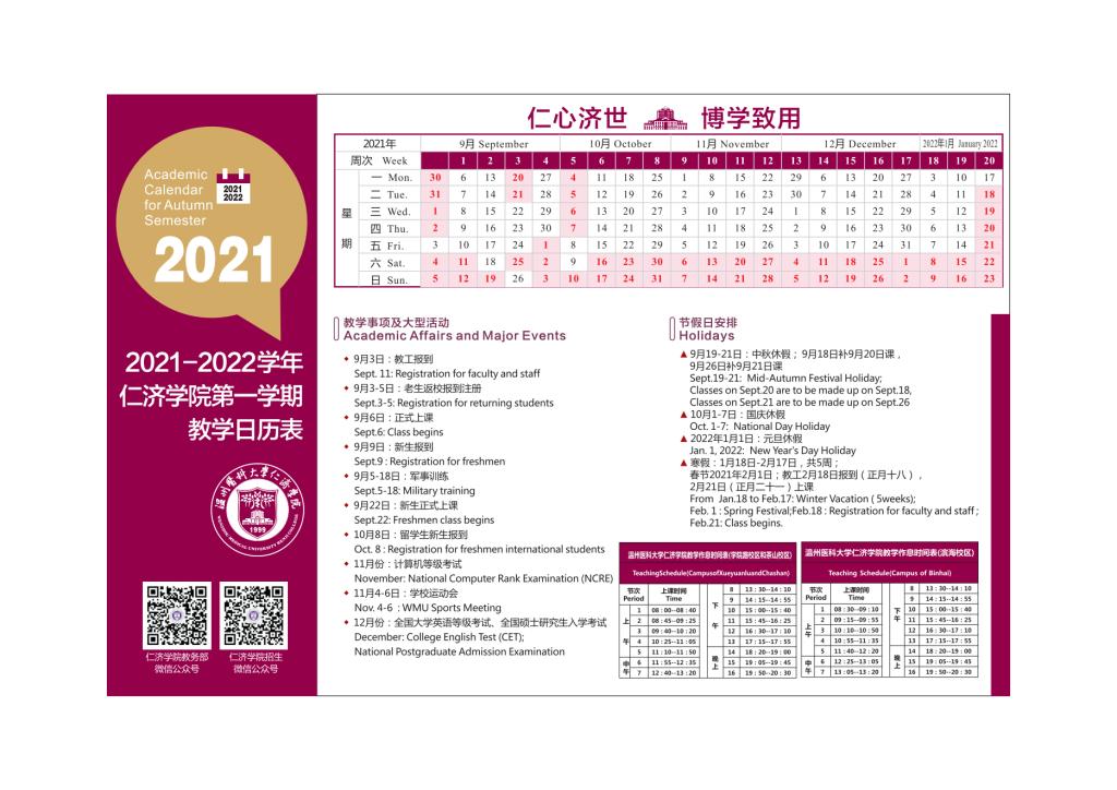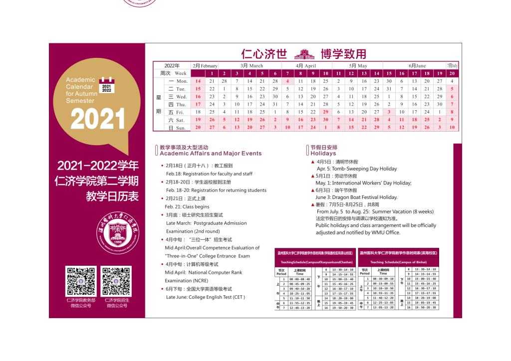 av解说 2021-2022学年第一学期和第二学期教学日历表