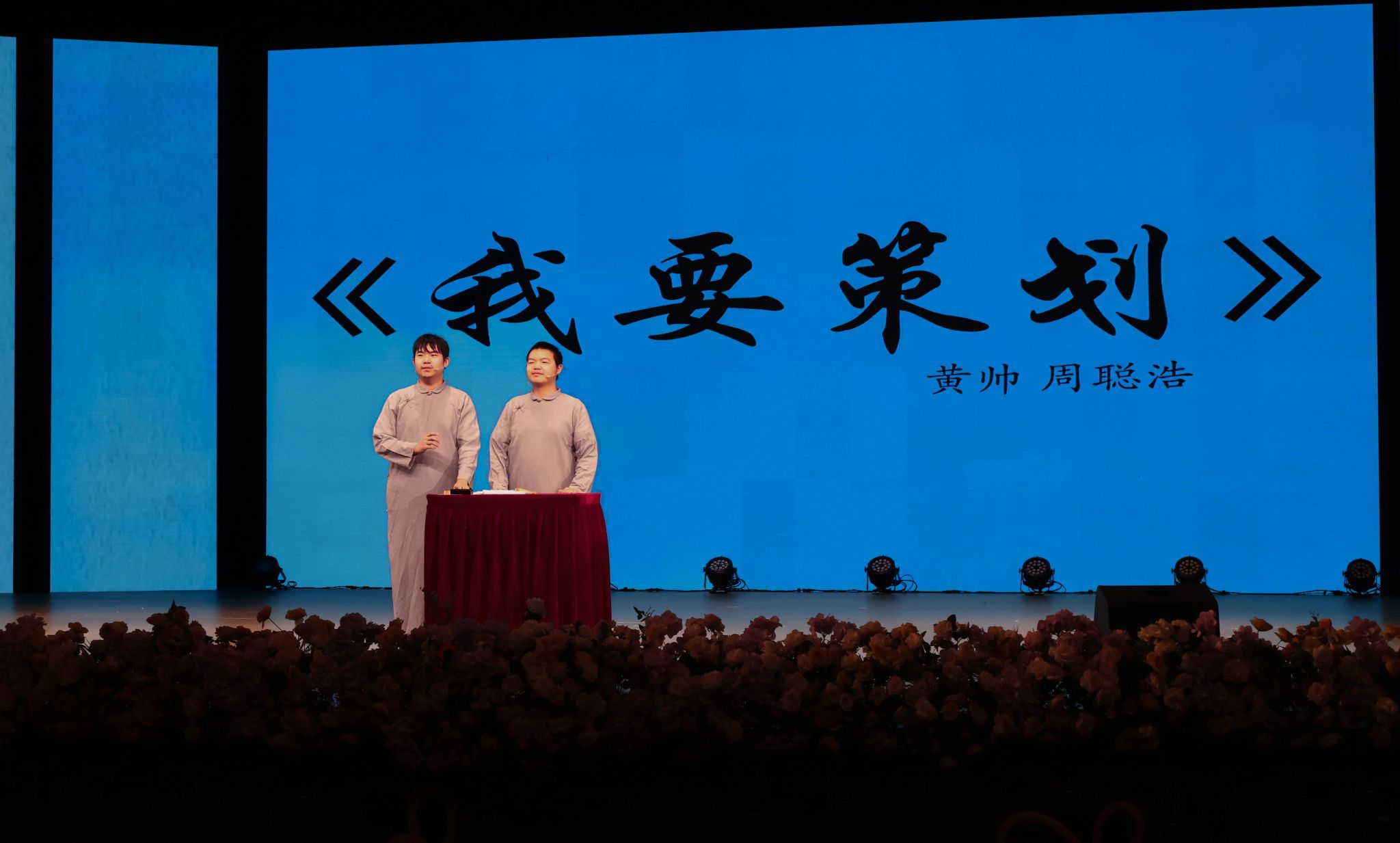 晚会节目精彩纷呈,高潮迭起。新生达人秀《仁心艺彩》融合武术、美声、魔术等多种表演形式,刚劲有力的武术招式,刀棍与空气碰撞的哗然声紧紧抓住观众的眼球;高亢悠扬的唱腔婉转绵长,赋予舞台以深沉的情感张力;魔术表演以趣味互动铺陈悬念,魔术师灵动笔触在黑板间定格“幸福”二字,既暗藏巧思,又呼应新生开启校园新生活的美好愿景,瞬间点燃全场热情。艺术团模礼队《半阙江南》将传统风韵与现代审美完美交融,旗袍的温婉与中山服的俊朗相映成趣,一步一韵、一颦一笑尽显东方雅韵。相声《我要策划》以诙谐包袱调侃校园日常,“上课困怎么办” 的趣味互动让台下笑声与掌声此起彼伏;医学一系、二系联合呈现的情景朗诵《白袍青春》,通过实验室钻研、急救实操等场景再现医学生日常,尾声 “健康所系,性命相托” 的铮铮誓言铿锵有力,成为晚会一大亮点。
