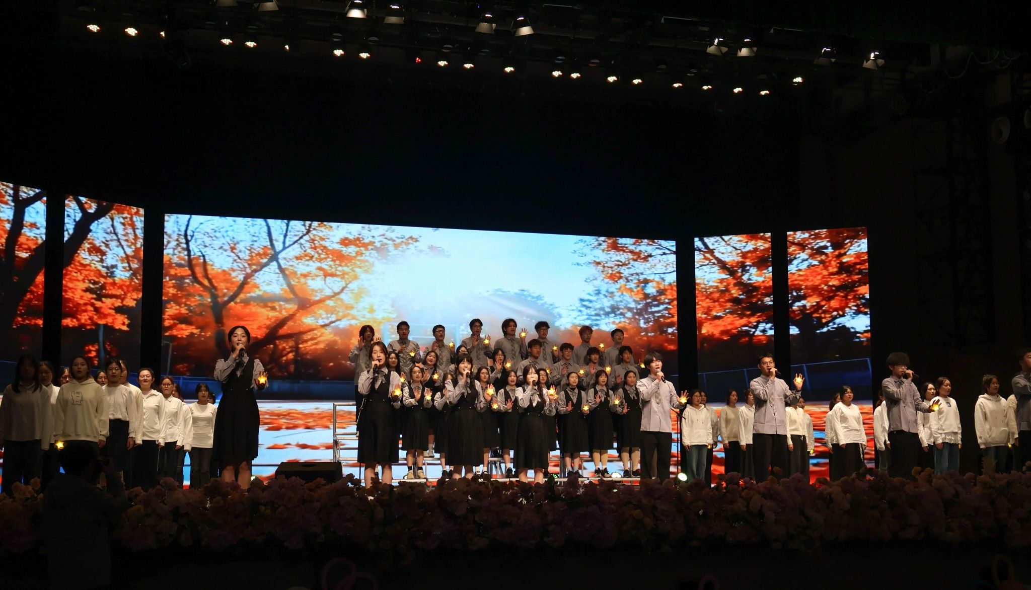 《青春进行时》经典歌曲串烧环节,《你曾是少年》《我的未来式》等熟悉旋律响起,现场瞬间化作青春合唱的海洋;啦啦操《青春恰时来》动作整齐划一、活力四射,展现出仁济学子的昂扬风貌。晚会临近尾声,2025 级新生辅导员们登台合唱《奔跑》,真挚歌声传递着浓浓的师生情谊,将现场温情推向顶点。