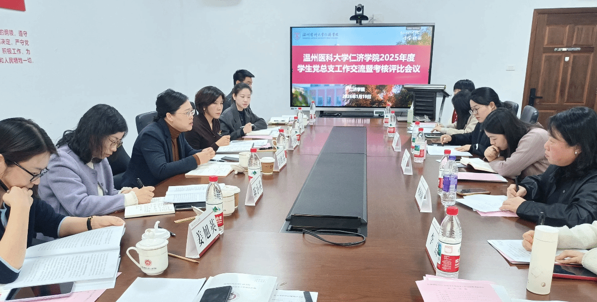 汇报环节中,医学一系、医学二系、医学三系、医学技术与药学系、护理系、人文管理与信息工程系党总支书记围绕思想政治建设、基层党组织建设、意识形态工作、思政工作成效及辅导员基础工作质量等内容,全面梳理本年度工作情况与成效。汇报内容翔实具体、亮点突出,既展现了各学生党总支在筑牢党建根基、深耕育人阵地等方面的扎实举措,也彰显了学生党建工作与人才培养深度融合的鲜明特色,为各系之间互学互鉴、取长补短搭建了平台。