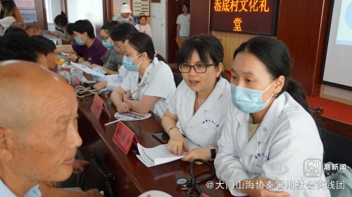 来到现场就诊的多为岙底村的老人们。“村里来了博士医生。”在村民们的口口相传下,也有从隔壁村“慕名而来”的。上午九时,这些村民们就在岙底村文化礼堂排起了长龙,都希望能让平时要坐几小时车、排几小时队才能看上的专家医生为自己把把脉、看看体检单。此外,慢性病一直以来是困扰他们的一大难题。坐诊医生们在提供义诊服务的同时,也在进行知识科普,让老年人们能够更好地应对慢性病问题。