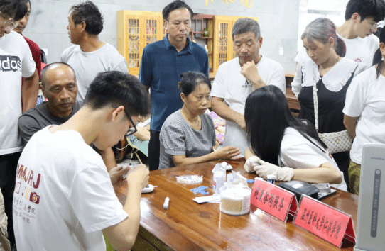 7月8日下午,实践团成员用口哨吹响《天空之城》,一起合唱《让我留在你身边》,共计表演10余个节目,还准备了毛巾、牙杯等物品分发。与此同时,大家利用医学专长,为安置群众提供了免费的血压、血糖测量服务。