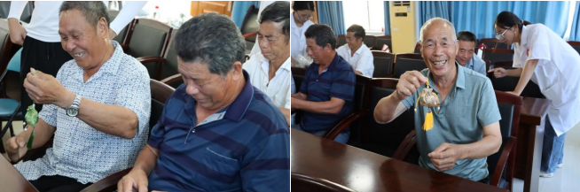 乐晒手作,香伴笑语。香囊制作完成后,老人们孩童般兴奋地展示着自己的作品。他们时而向支医组的同学们展现共同的成果,时而和同伴们交换着闻彼此的香囊。艾草与薄荷的清香在笑声中流转,这份亲手制作的健康祝福,让每位老人脸上都绽放出满足的笑容。