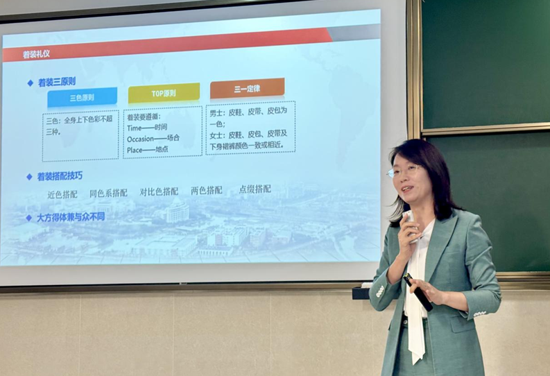 据悉,本次集训营紧扣职场核心素养要求,构建了模块化、系统化的培养体系。在演讲表达专题中,国家一级播音员、温州广播电视传媒集团金牌主持人王星睿以 “解锁说话新逻辑” 为主题,从声音塑造、肢体语言等维度展开教学,通过实战演练帮助学生建立表达自信,他提出的 “表达的本质是有效传递与共情共鸣” 理念,让学生在互动中掌握公众演讲核心技巧;温州理工学院法学院党委书记何碧如教授主讲的职场礼仪专题,系统解读形象礼仪、交际礼仪与面试礼仪规范,“心中有礼,面试不慌” 的教学主张,为学生塑造专业职业形象筑牢基础。