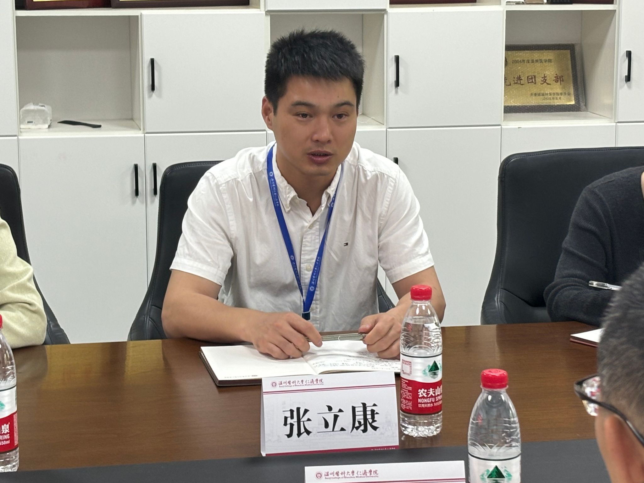5月15日,温州市中心血站站长陈栋一行来av解说 调研无偿献血工作。学院党委副书记张立康、团委书记王翩翩及志愿者服务中心指导老师等参加了座谈。