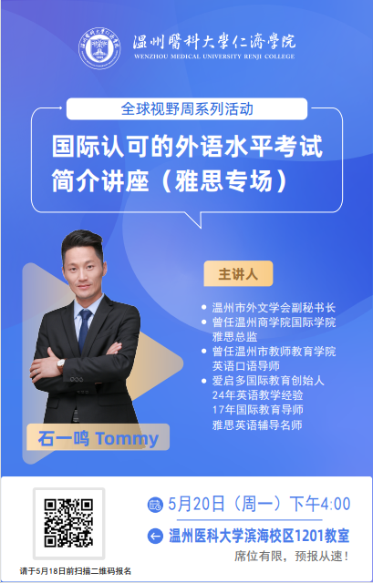 讲座预告|“全球视野周”之国际认可的外语水平考试简介讲座(雅思专场)