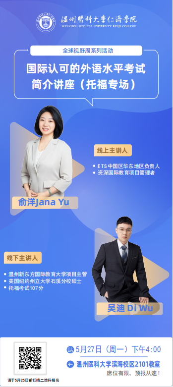 讲座预告|“全球视野周”之国际认可的外语水平考试简介讲座(托福专场)