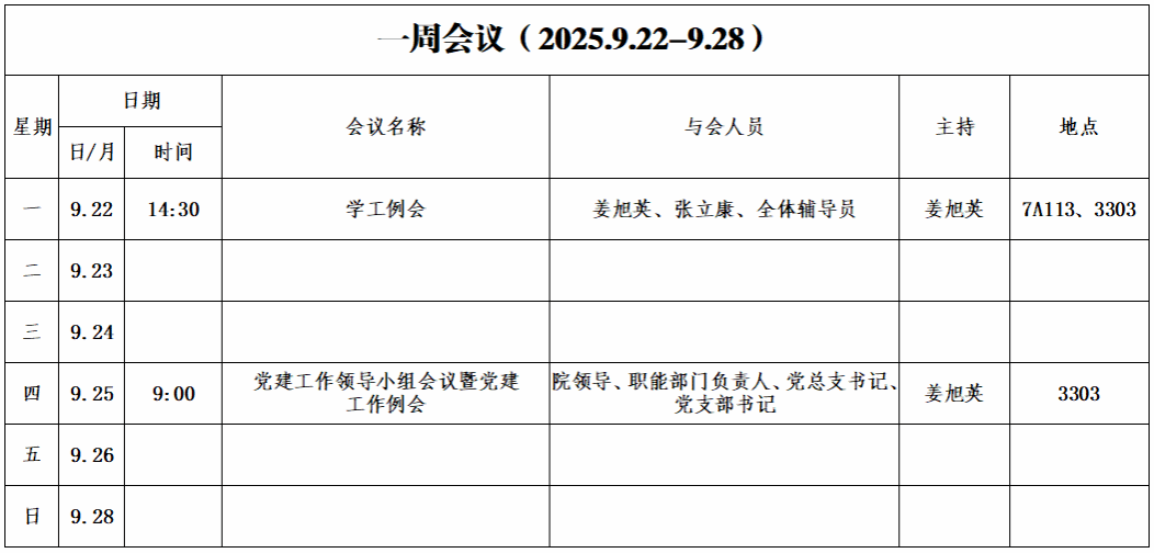 第三周会议安排
