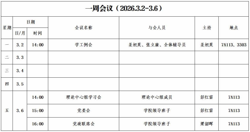 第一周会议安排