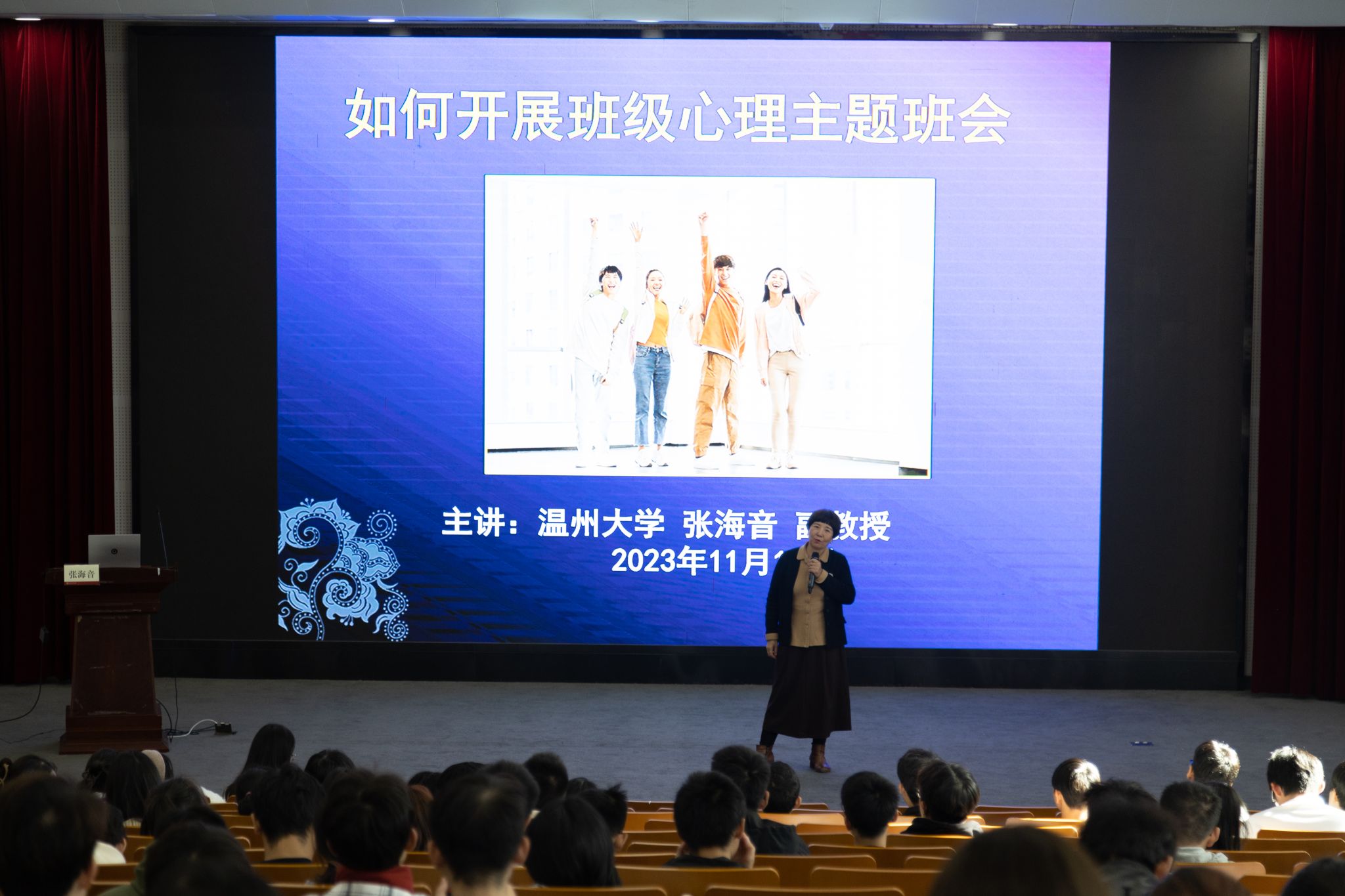 温州大学副教授张海音老师为心理委员带来了《如何开展班级心理主题班会及心理团辅》讲座。她强调了心理主题班会的重要性,指出心理主题班会是提高班级凝聚力、促进同学之间相互了解的重要途径,并对如何策划、组织和实施心理主题班会进行了详细讲解。同时,张老师还现场邀请了部分学员进行心理团辅实操,让在场心理委员获益匪浅。