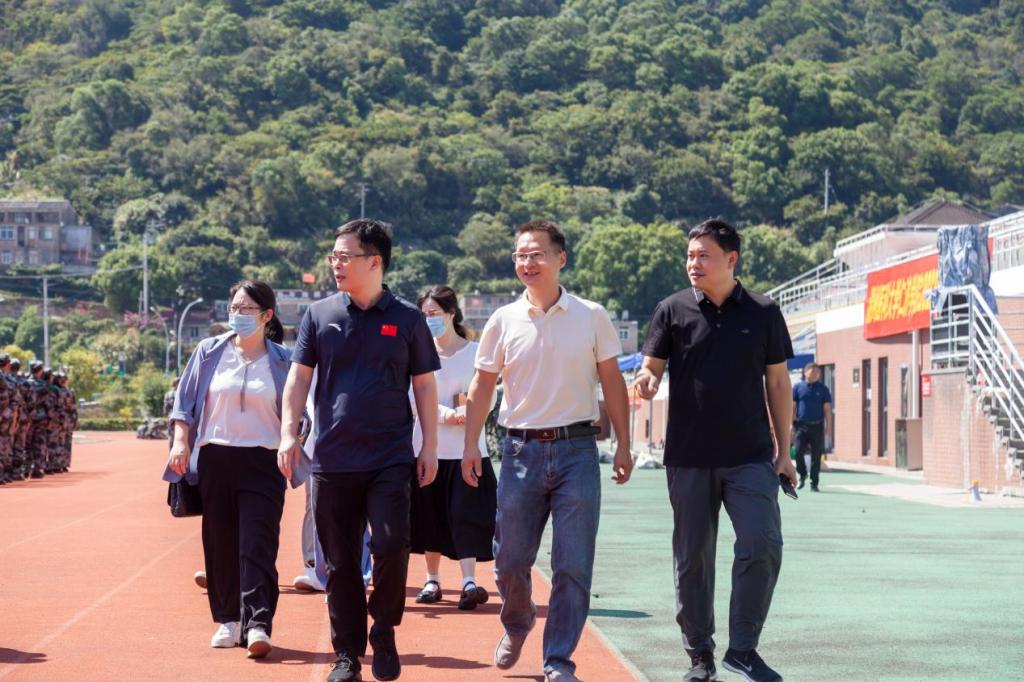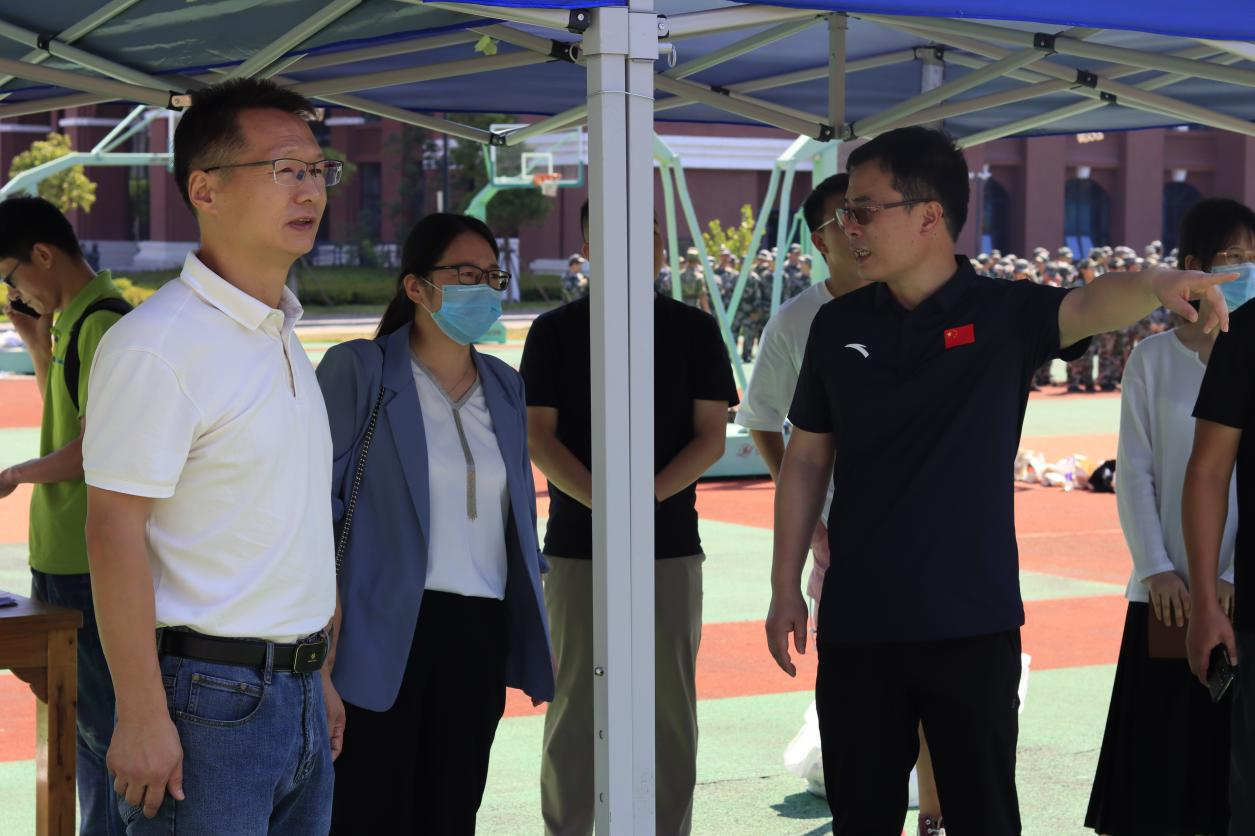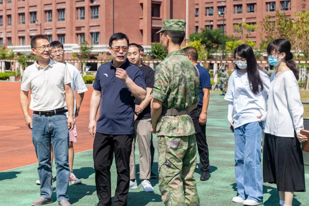 初秋时节,丹桂飘香,适逢中秋节与教师节“喜相逢”,学院党委书记陈乃车、党委副书记卢益东一行来到训练场看望参加军事训练的2022级新生及承训教官。