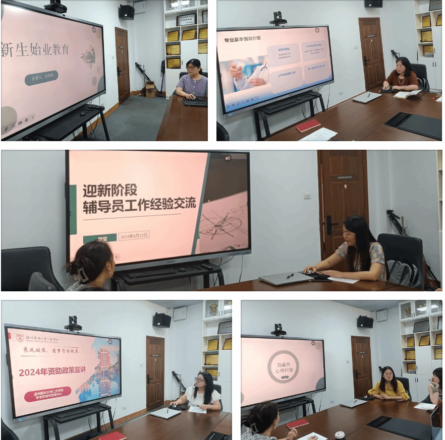 在新生辅导员专题培训环节,叶飞主讲了2024级新生辅导员迎新阶段工作指南,对新生辅导员的近期重点工作进行了详细说明。汪玲玲介绍了新生始业教育课程安排情况,指出了新生适应阶段辅导员的重要引导作用。姚颖颖围绕新生第一次年级大会,带领全体新生辅导员进行了一次集体备课。杨春燕结合资助工作,对大学生资助政策、新生绿色通道等相关情况进行了介绍。李洁围绕心理健康教育,讲解了大学生隐蔽性心理问题识别与学校、学院心理健康服务。曾莹结合自身经验,分享了迎新阶段辅导员需做好的准备工作,为新生辅导员提供了经验和指导。
