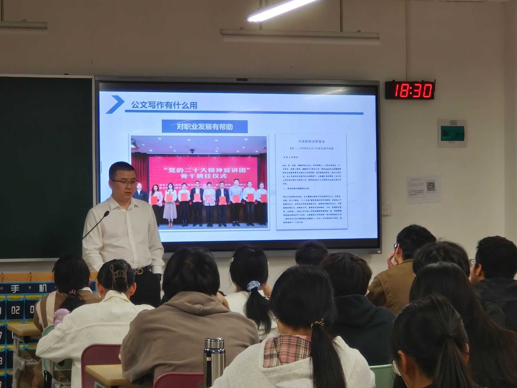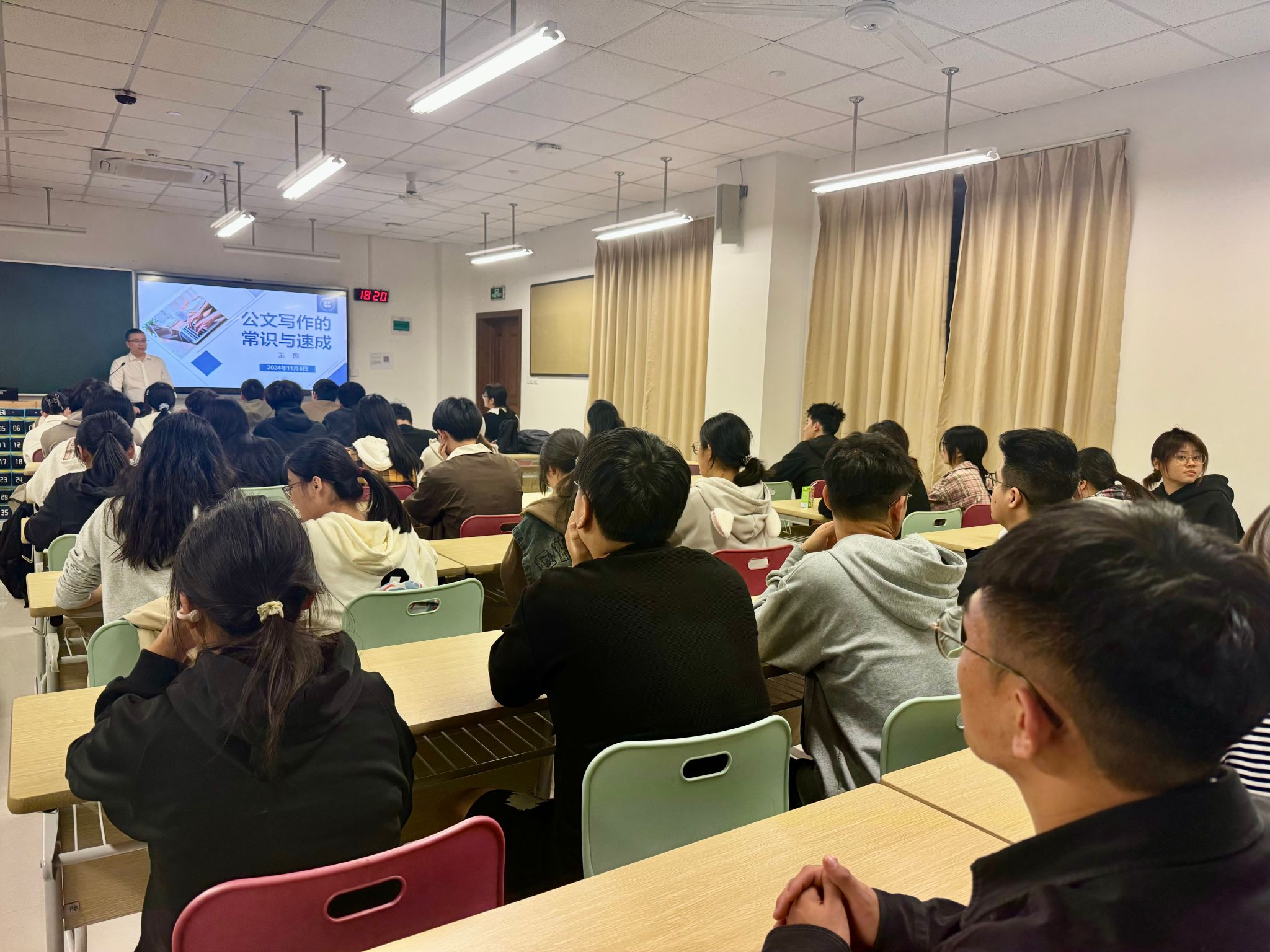 11月6日,“后浪计划——青年大学生成长赋能”之公文写作培训在av解说 至理楼2102如期开展。本次讲座由温州市政协特邀信息员、清华大学出版社签约作者王振老师担任主讲老师,围绕公文写作的实用性、认识深度、速成技巧及日常练习方法进行了全面而深入的探讨。