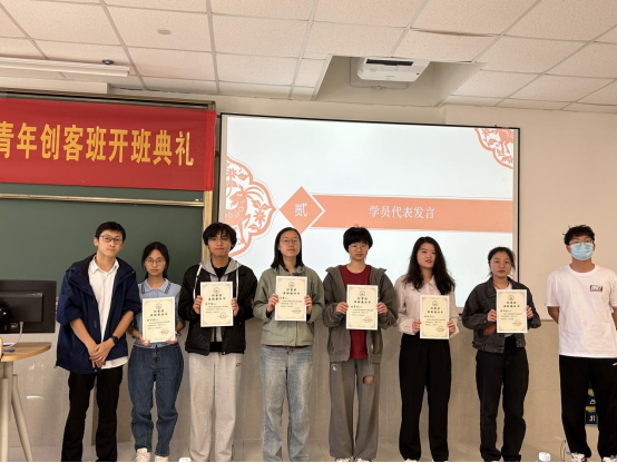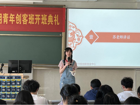 创客班学员代表邵谌优同学发言,她认为即使大学生已经具备良好的创业条件和初步创业构思,若没有理论知识作为指导没有实践作为支撑,创业过程将面临更多的挑战与风险。通过加入创客班的方式,坚定正确的理想信念,培养团队合作能力,加强自主学习能力和抗风险能力。理想信念是创业的精神和力量源泉,也是人生路上的指明灯;团队协作精神可有效加强创业者的信息交流,形成优势互补;强大的自主学习能力有助于激发创新思维。