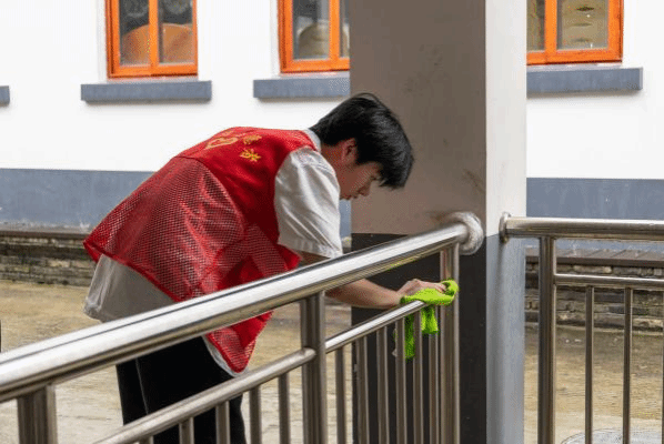 拂去窗边厚厚的灰尘、擦拭栏杆上的锈迹、清理墙角的蛛网……经过一上午的劳动,村民公共文化空间变得更加洁净、更加卫生、更加和谐。