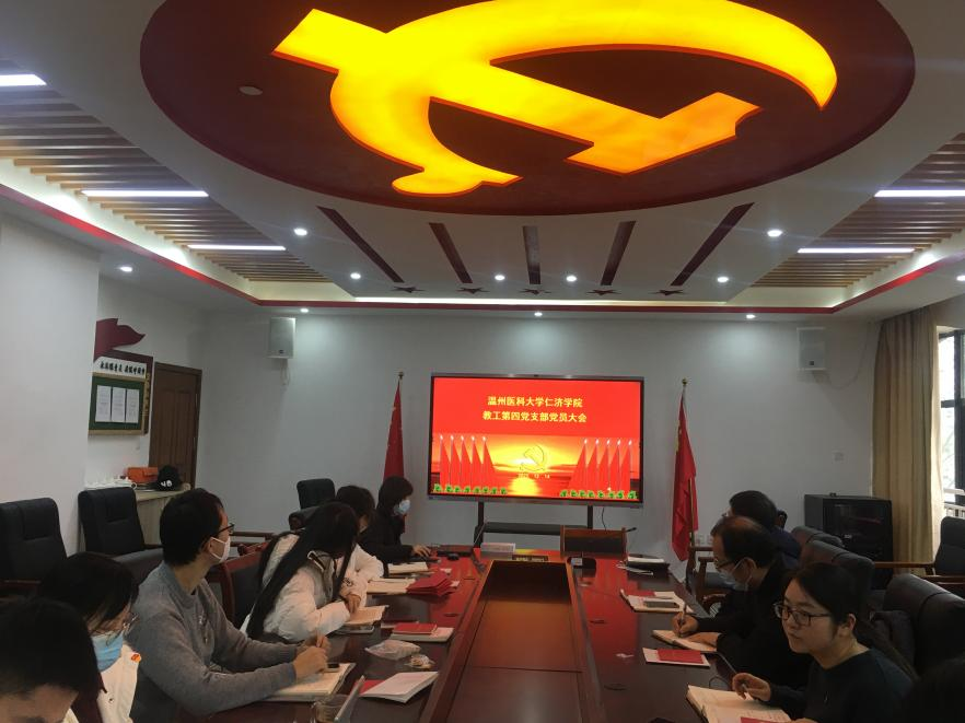 12月14日号上午9点,教工第四党支部召开支部党员大会,副院长朱晓东、院党委副书记姜旭英参会指导,会议由支部书记梅思佳主持,支部全体党员参加。