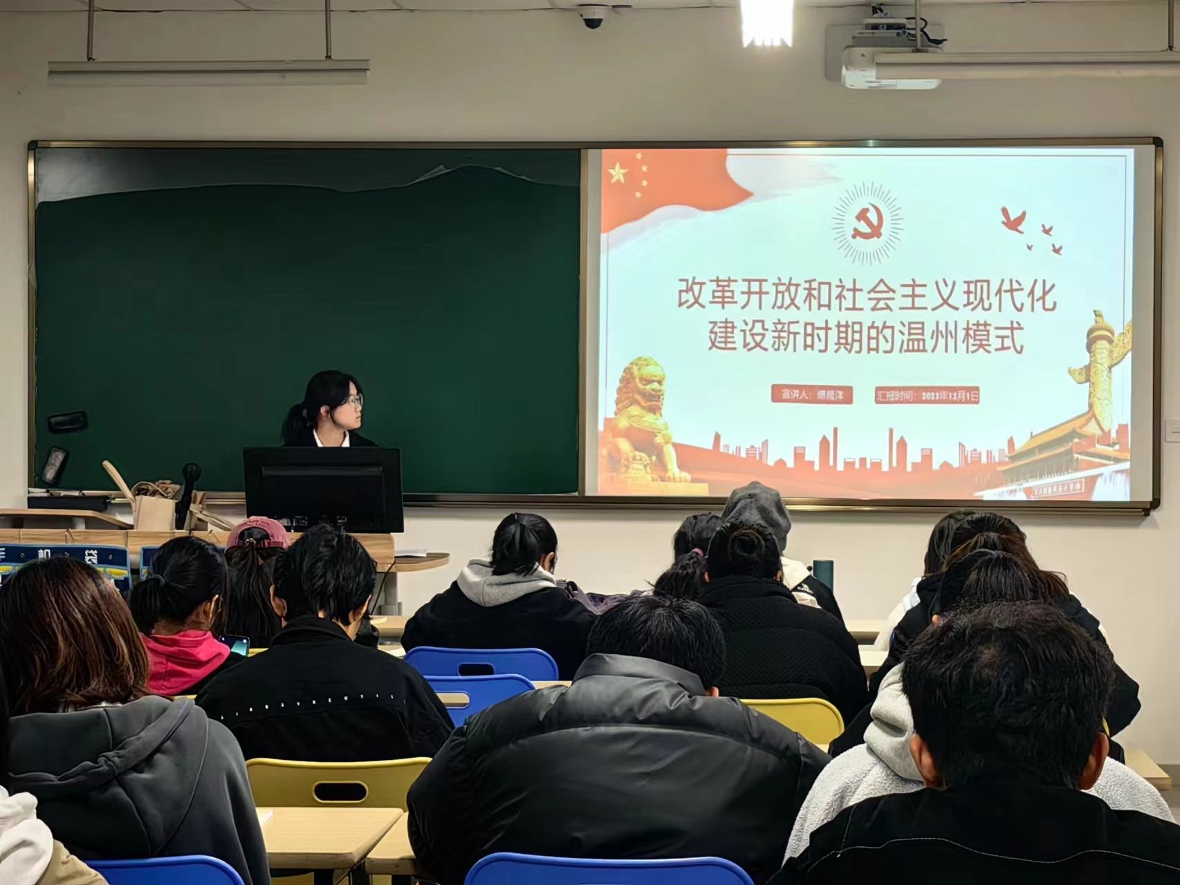 温州作为社会主义现代化建设聚焦之地,为响应改革开放和社会主义现代化建设新时期的“温州模式”,av解说 滨海校区于12月1日晚18:30在教室2119开展了本学期第三次高峰论坛活动。宣讲人傅晨洋从改革开放时期切入,从四个部分来讲述这时期的温州实践。