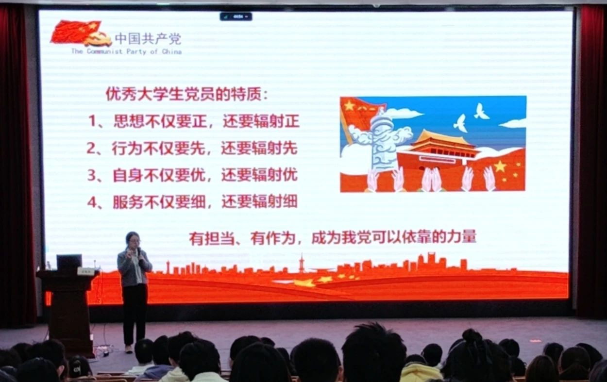 最后,从“合格”到“优秀”,她指出优秀的大学生党员,思想不仅要正,还要辐射正;行为不仅要先,还要辐射先;自身不仅要优,还要辐射优;服务不仅要细,还要辐射细。合格的大学生党员有担当、有作为,定能成为我党可以依靠的力量。
