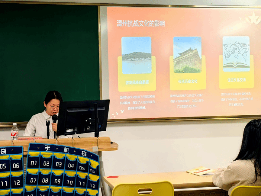 主讲人王聪颖首先介绍了抗战时期的温州是中国东南沿海的一个重要城市,经历了巨大的磨难和损失,在这样的历史背景下,温州人民展现出了顽强抵抗、不畏强暴的英勇气概,为保卫家园、捍卫民族尊严付出了巨大的努力和牺牲。这种不屈不挠、团结奋斗的精神,正是温州抗战文化的核心所在。温州人民形成了坚韧不拔、自强不息的抗战精神,这种精神成为温州抗战文化的重要组成部分,有鲜明的地域特色和民族特色,这体现了温州人民的英勇抗争和爱国情怀。