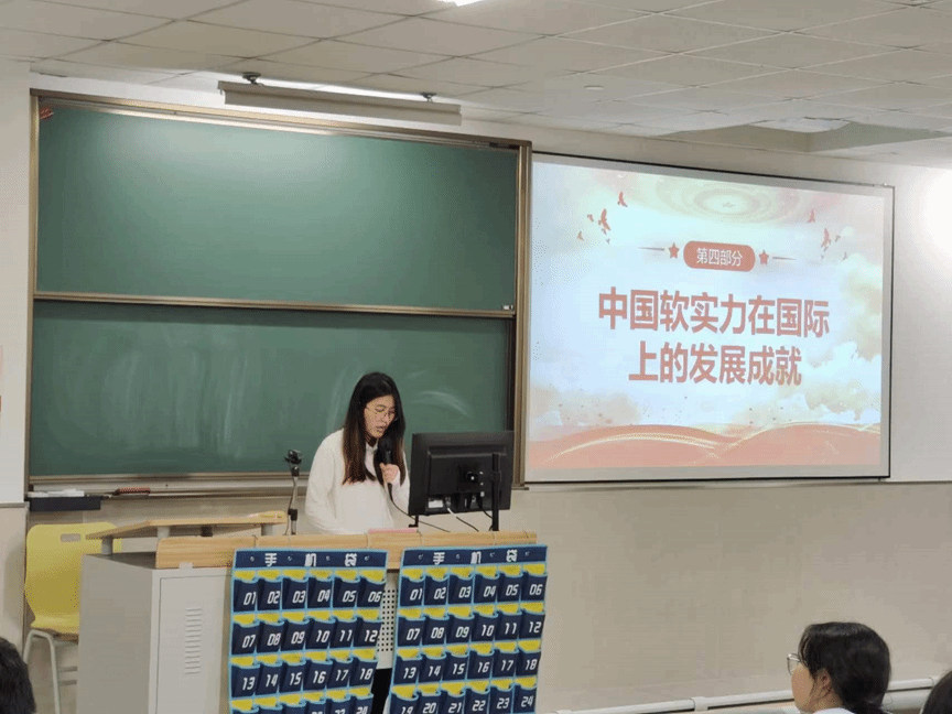 2024424日晚六点三十分,党建服务与人才培训中心分别于茶山校区和滨海校区开展了以“中国软实力从何而来”为主题的一周看时事活动。主讲人赵灿灿从什么是软实力、提升软实力重要性、各国软实力的现状、国际上的发展成就、中国软实力提升的原因、提升面临的机遇挑战、学生党员怎么做七个方面进行讲述。