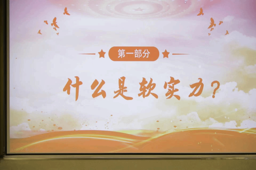首先,主讲人介绍了什么是软实力:软实力是一国通过吸引和说服别国服从你的目标从而使你得到自己想要东西的能力。同时也强调了发展软实力的重要性:提升国家文化软实力,关系着实现中华民族伟大复兴中国梦、关系着构建人类命运共同体。