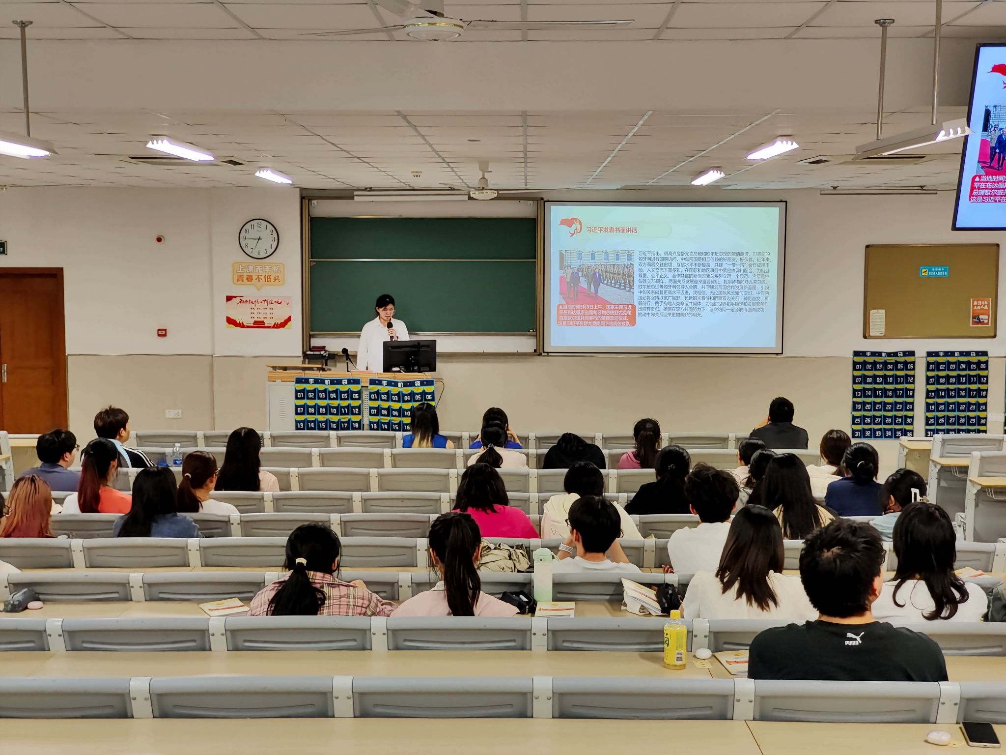 随后主讲人讲述了习近平总书记的匈牙利之行,匈牙利是最早同新中国建交的国家之一,近年来两国关系驶入“黄金航道”。访匈期间,两国领导人宣布,将中匈关系提升为新时代全天候全面战略伙伴关系。匈方表示,将以匈牙利今年下半年担任欧盟轮值主席国为契机,推动欧中关系健康稳定发展。