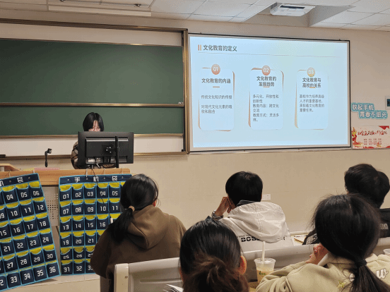 然后,主讲人讲述了文化教育与高校思想工作结合。在高校政治思想工作中,培养社会主义核心价值观是核心任务之一。教师在设计思想政治课时,应将传统文化与时事热点相结合,如讨论当前社会问题、道德争议等,以此作为教学设计的切入点。这样的设计能够激发学生的兴趣,使传统文化教育更加贴近现实生活,增强课程的实用性和时效性。