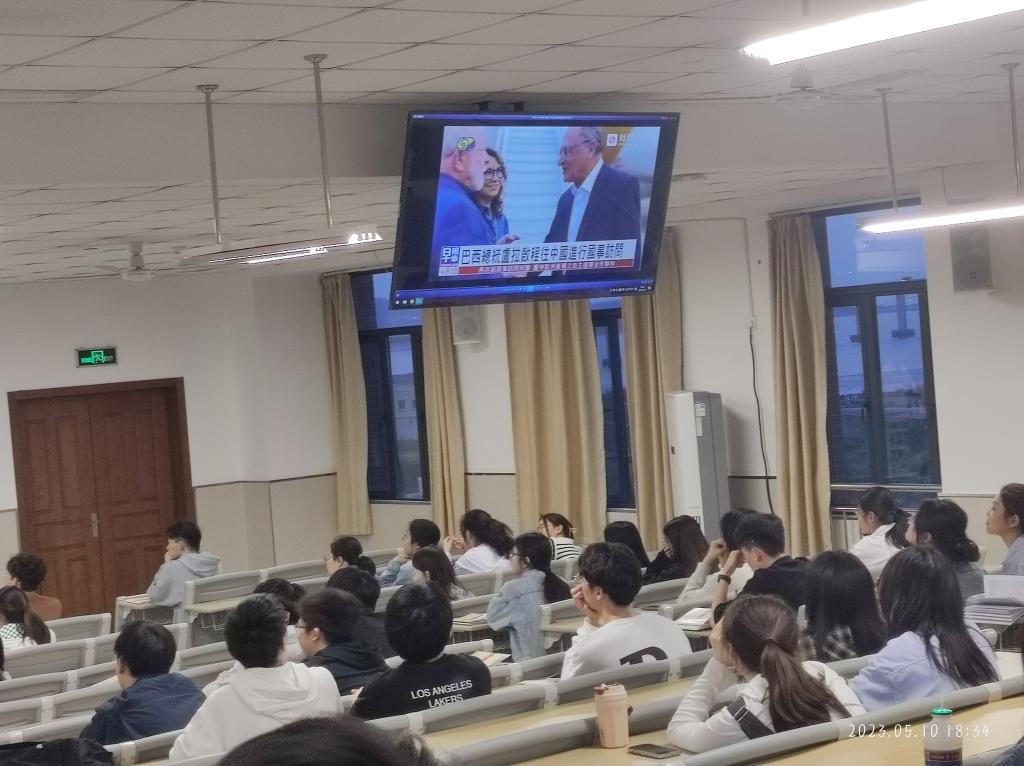 2023年5月10日晚六点三十分,党建服务与人才培训中心分别于茶山校区和滨海校区开展了以“巴西总统卢拉访华”为主题的一周看时事活动。主讲人从“卢拉生平介绍”、“访华前期”、“访华期间”、“会后总结”四个方面进行讲述。