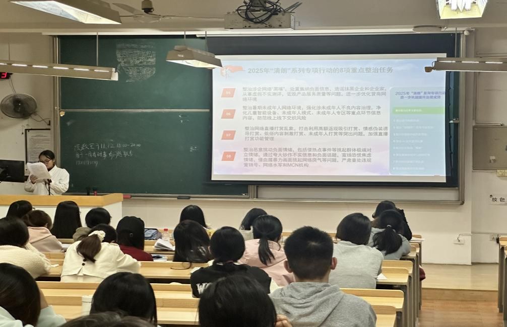 党建服务与人才培训中心于2025年11月12日晚18:30在茶山校区7AJ203和7AJ202开展了以“清朗行动再亮剑”为主题的一周看时事活动。近期“清朗行动再亮剑”,以雷霆之势整治网络乱象,既是对网络空间的“大扫除”,更是新时代意识形态阵地建设的关键举措,彰显了守护精神家园的坚定决心。