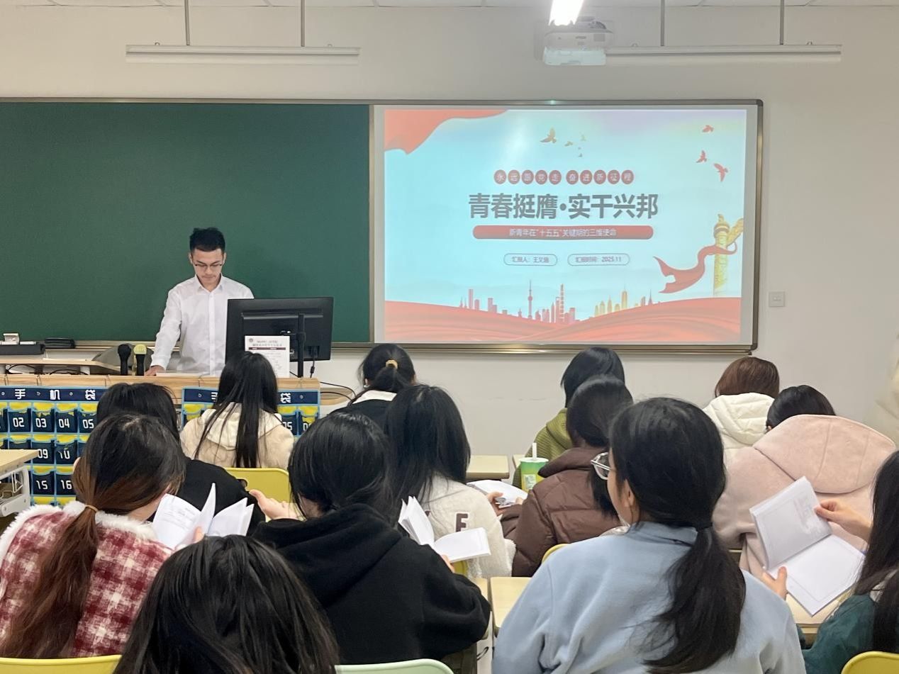 2025年11月28日18:30,党建服务与人才培训中心在滨海校区2306教室举办主题高峰论坛。本次论坛特邀王义涵同学主讲,聚焦“青春挺膺·实干兴邦——新青年在‘十五五’关键期的三维使命”核心主题。这场论坛精准锚定了清晰可循的奋进路径,让青春力量与时代重任同频共振。