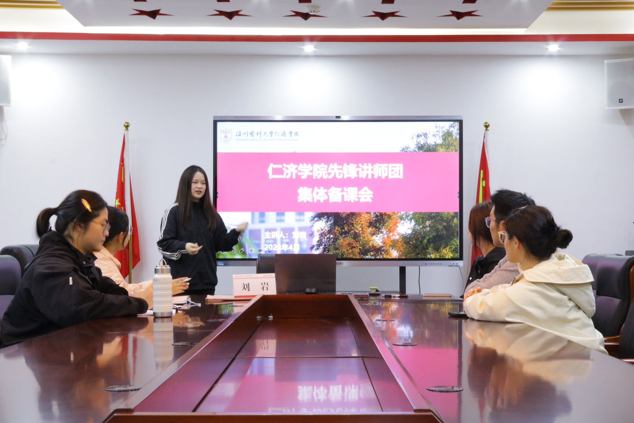 为强化学生党性修养,提高学院朋辈教学质量,av解说 先锋讲师团于2024年4月1日晚在滨海校区召开线下集体备课会,茶山校区学员通过视联网线上参会。备课会由学院先锋讲师团指导老师刘岩主讲。