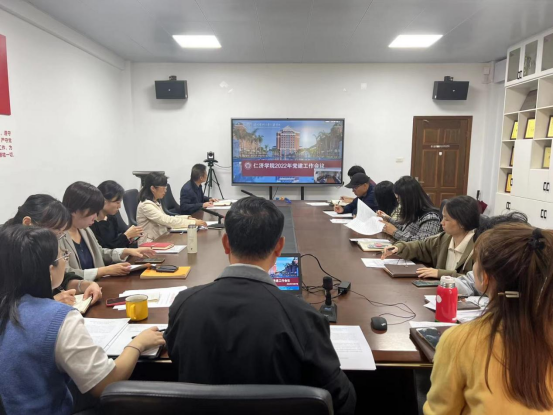 10月27日上午,学院召开党建工作例会。党委副书记刘洁出席并主持会议,学院教工党支部书记、学生党总支书记和各科级干部参加会议。会议以视联网形式在茶山校区7A113与滨海校区3303会议室同步举行。