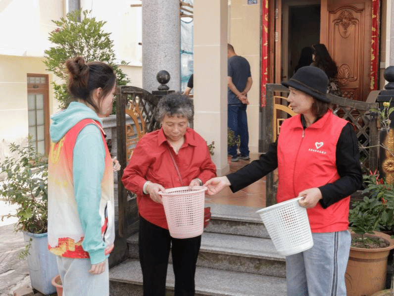 会后,“一老一青壮”携手,穿梭在东岙顶村各个角落,开展清捡垃圾活动。大家身着红马甲,分工明确、干劲十足,一手持着垃圾钳,一手拿着垃圾袋开展街道大扫除,捡拾道路上及绿化带中的纸屑、烟头、塑料袋、果皮等各类垃圾。大家向路过的居民宣传垃圾分类知识,鼓励居民自觉养成良好的生活卫生习惯,从源头减少垃圾乱丢乱扔、杂物乱堆乱放等行为,争做环境卫生整治的倡导者、参与者和维护者。