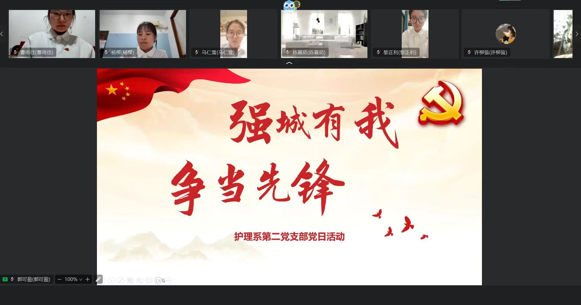 7月20日18:30,护理系第二党支部开展了“党建与业务相融合,助力强城行动”主题志愿服务感悟分享会,会议由支部书记汪玲玲老师主持。在分享的过程中,同志们纷纷表示,参与医院志愿服务,不仅能了解医疗人员在院的基本工作流程,各项医疗设备的操作,还能学会用所学知识解决实际问题,提升实践能力和团队协作能力,在志愿服务中关爱他人、奉献社会,不断增强自己的责任感和使命感。