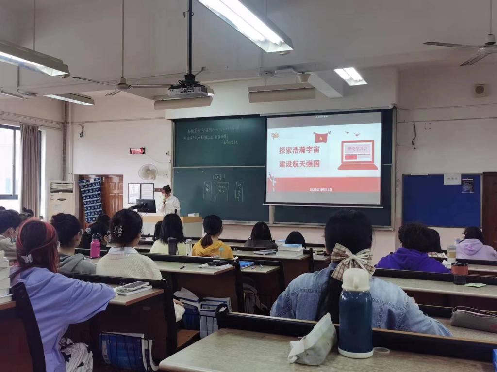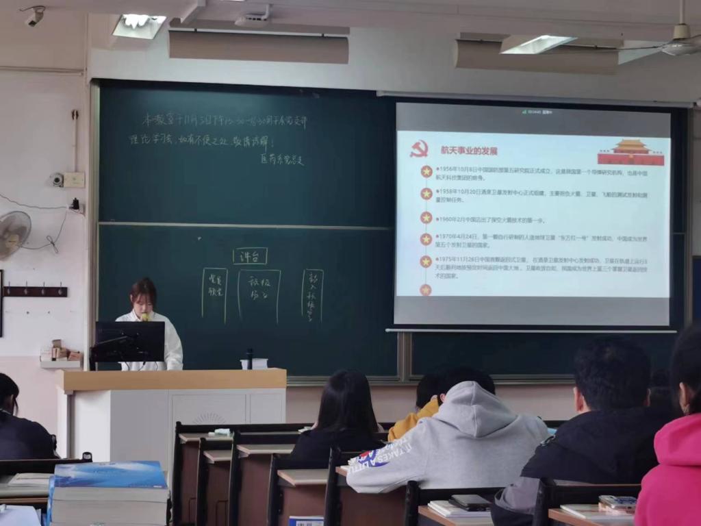 2022年11月5日下午13:30,av解说 医学技术与药学系党支部于滨海校区2211和茶山校区6A307教室举行本学期第三次理论学习会,本次学习会的主题是:“探索浩瀚宇宙,建设航天强国”。