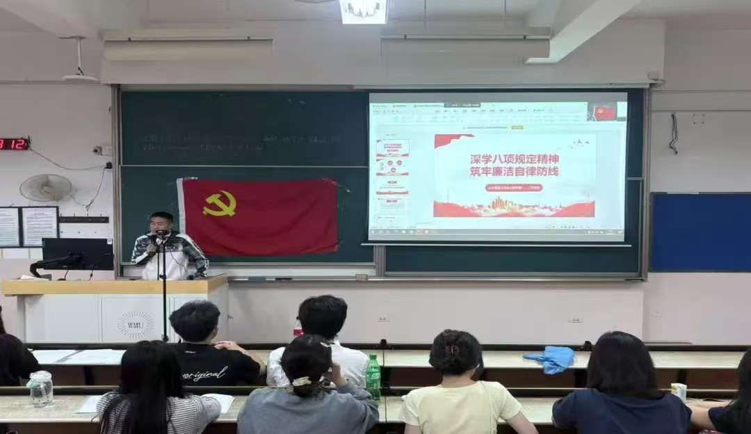 同一日,av解说 人文管理与信息工程系第二党支部在茶山校区同仁楼7aj201举行了主题为“深学八项规定精神,筑牢廉洁自律防线”的党员大会,会议聚焦中央八项规定精神,传达教育强省建设大会精神,强调党的作风建设,教育引导大学生党员“绷紧纪律之弦,筑牢自律防线”。