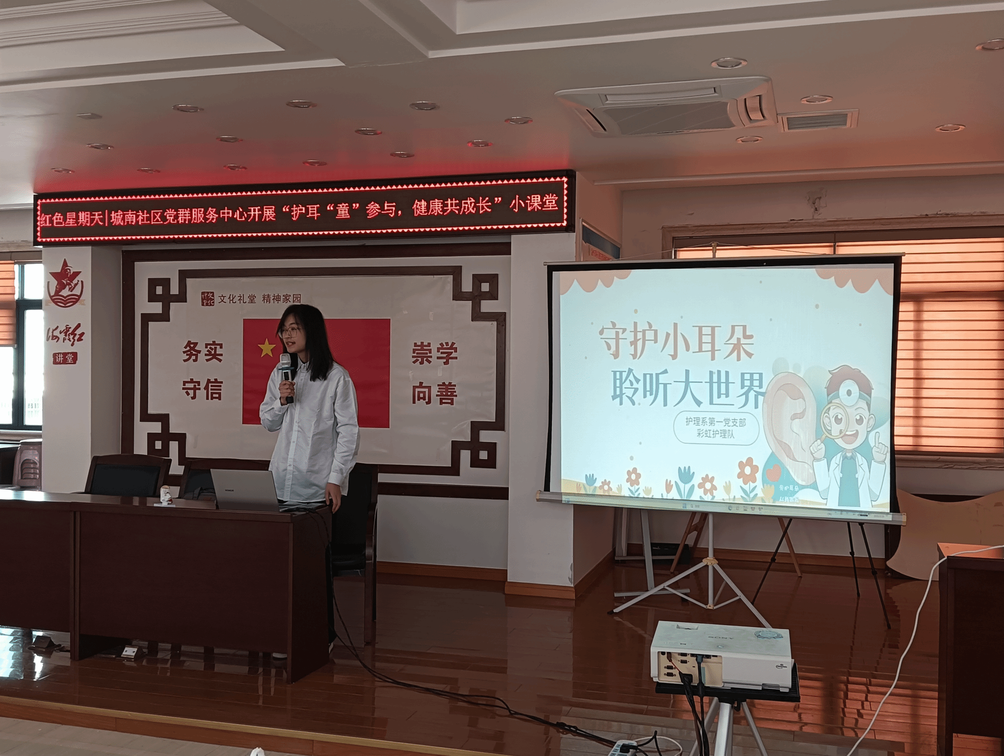 为响应全国爱耳日的号召,普及爱耳护耳知识,增强小朋友们的听力健康意识,2025年3月18日上午,av解说 护理系第一党支部在城南社区党群服务中心成功举办了一场主题为“守护小耳朵,聆听大世界”的爱耳日宣传活动。