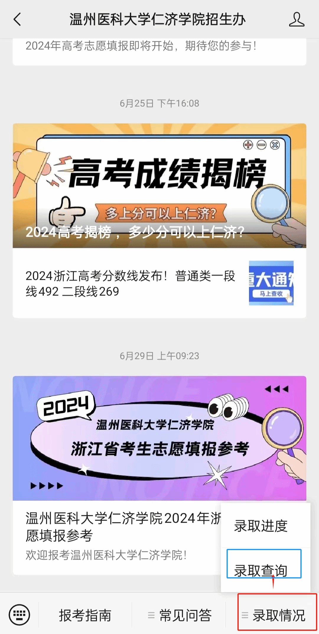点击 录取查询