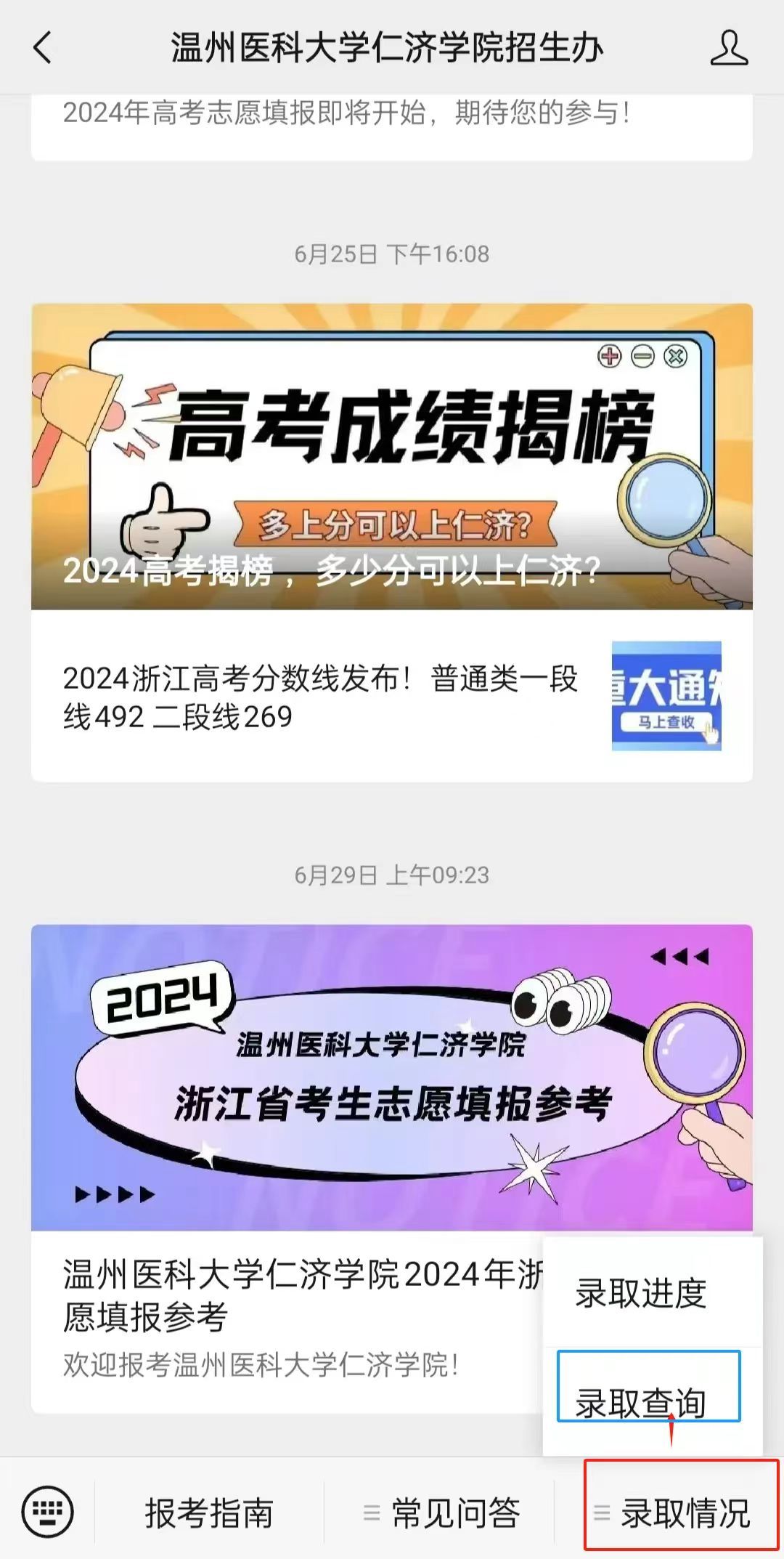 点击 录取查询