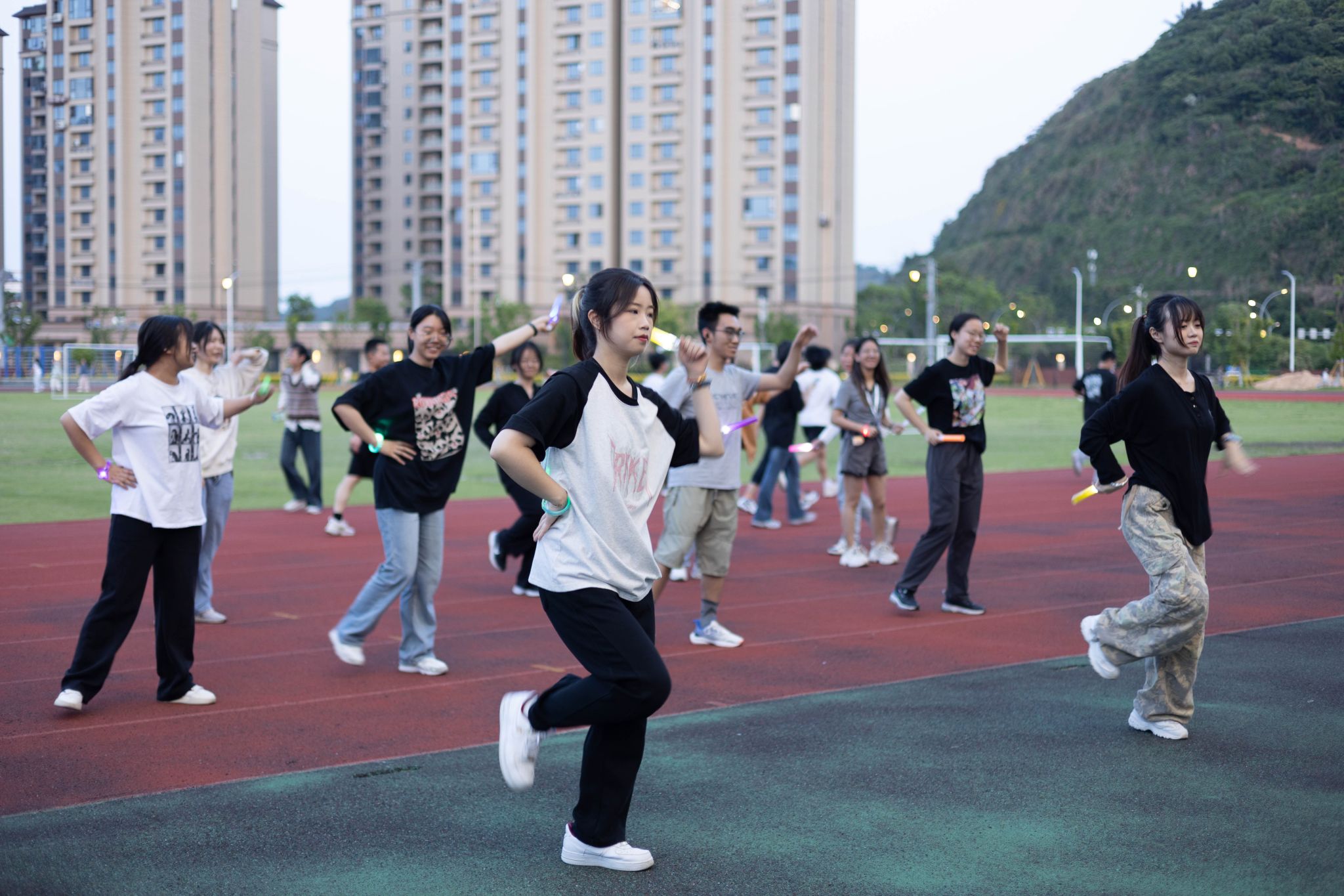 在温医大av解说 夜晚的操场,有同学带着荧光手环,有同学挥舞着荧光棒,在动感的音乐旋律中转髋扭跨,伸腰展背。热身后同学们携手同行,跑道上点点荧光汇聚成队,鼓励和坚持在喜闻乐见的音乐和灯光下同响。此外,校园广场舞活动还邀请了学校舞蹈社同学进行歌舞表演,广场舞歌单也是紧跟潮流,现场同学跟随音乐节拍,翩翩起舞,笑容满面。不少同学表示在寝室听到操场传来的音乐,看到操场荧光点点,忍不住呼朋唤友走出寝室前往热闹的操场。