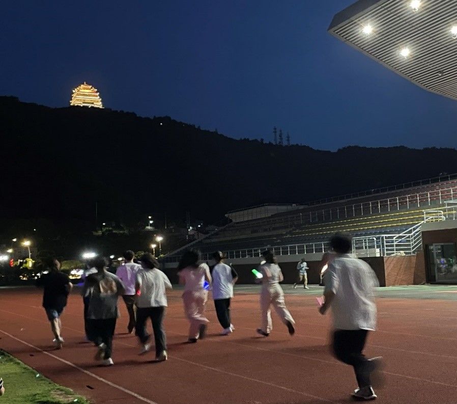 “凤凰传奇歌曲专场夜跑!还有专场广场舞!操场氛围感超强,快来”