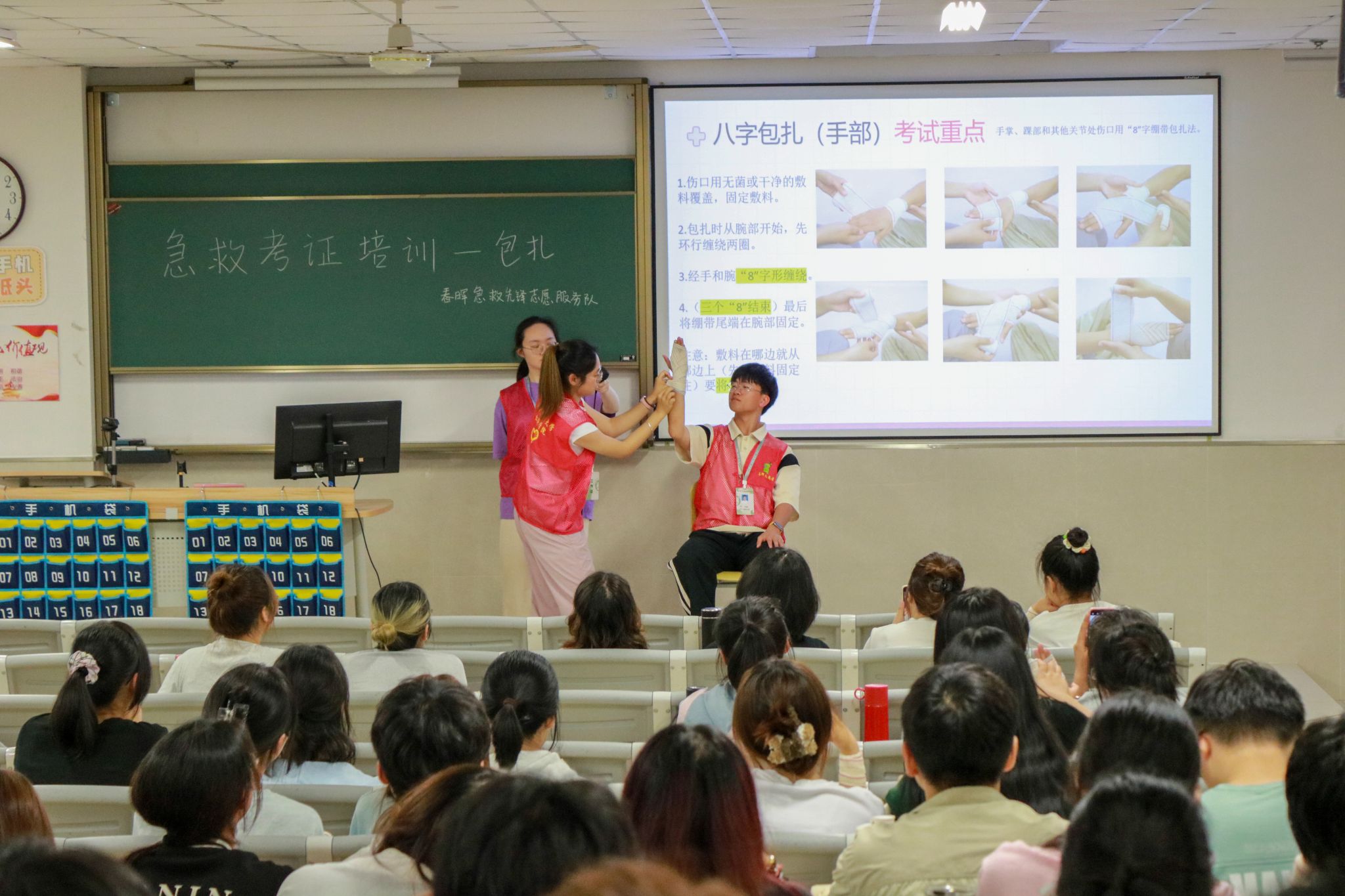 5月25日,av解说 邀请温州市洞头区红十字会的叶帅老师为av解说 的同学们开展了一场别开生面的急救技能培训。叶老师采用了“理论+实操”的授课方式,通过生动的案例,详细地讲解了包扎技巧、心肺复苏以及海姆立克急救法,同时,结合生活中的实际案例,向同学们介绍了中暑和癫痫的急救方法以及拨打120的注意事项。培训后,同学们纷纷亲自动手,投入到实践操作中。老师和志愿者们在一旁提供细致的指导,并着重指出操作中的关键点和常见错误。本次培训共有67名同学顺利通过考核获得“红十字救护员”证书。