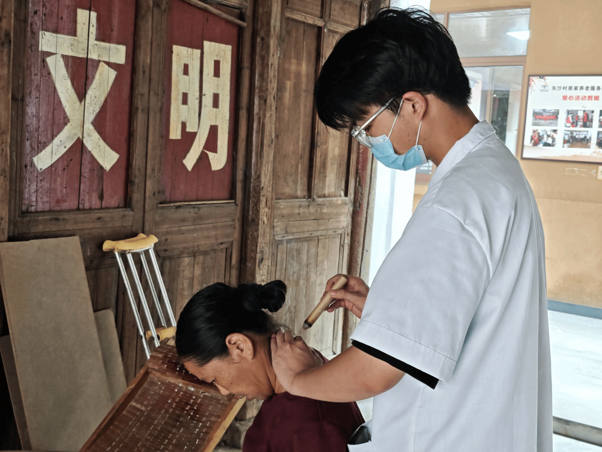艾灸体验区同样备受青睐。志愿者们运用传统艾灸疗法,精准地为长者进行悬灸操作。现场艾香袅袅,一位体验后的老人欣慰地表示:"肩膀明显轻松多了,感觉很舒服。"这项传统养生技艺在现代志愿服务中焕发新活力,为长者带来身心双重的关怀。