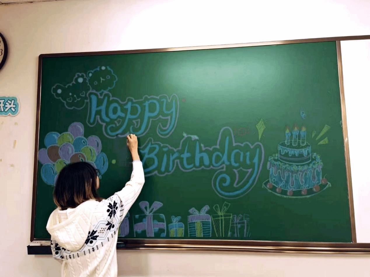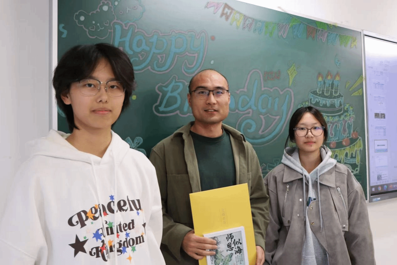 “老师来了!”随着翟向阳老师推开门,同学们齐声喊出“翟老师生日快乐!”,声音洪亮又充满活力,瞬间点燃了现场的热闹气氛。翟向阳老师看到同学们灿烂的笑脸,眼中满是意外与惊喜,嘴角扬起温暖的弧度。