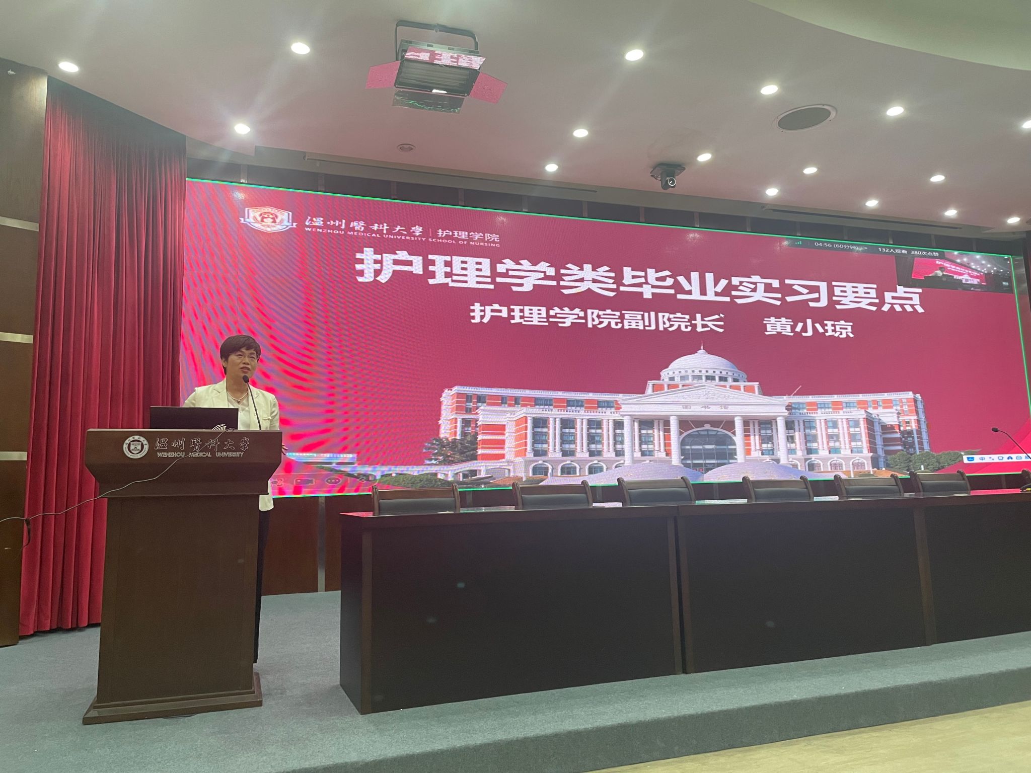 为进一步加强护理专业学生的实践能力和职业素养,6月5日下午,2025届护理专业学生毕业实习教育大会在茶山校区旭光厅顺利召开。护理学院副院长黄小琼、附二院护理部副主任诸葛林敏、附一院血管外科132病区护士长麻朋艳应邀出席此次会议,教务部、护理学院教学办相关负责老师、2021级护理专业辅导员及2025届护理专业实习生参加了此次教育大会。