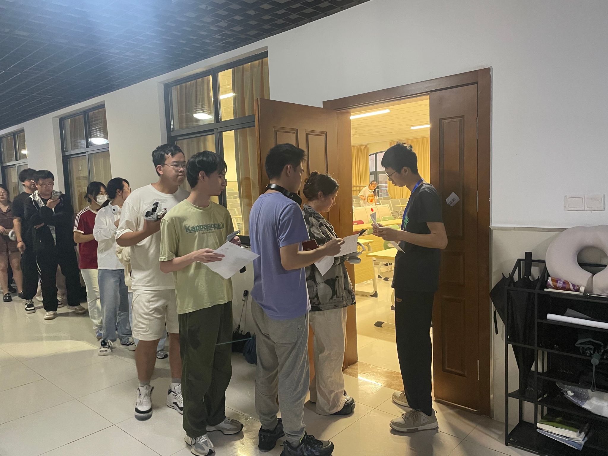 四六级考试规模大,考生人数多,为保证考生顺利进入考场,av解说 特从人员、场地、组织等方面为考生提供各项暖心服务。组织志愿者学生们引导跨校区考生快速找到相应考场,开放教务办公室为遗忘或遗失准考证考生提供打印服务,食堂为考生、监考教师提供足量餐饮。