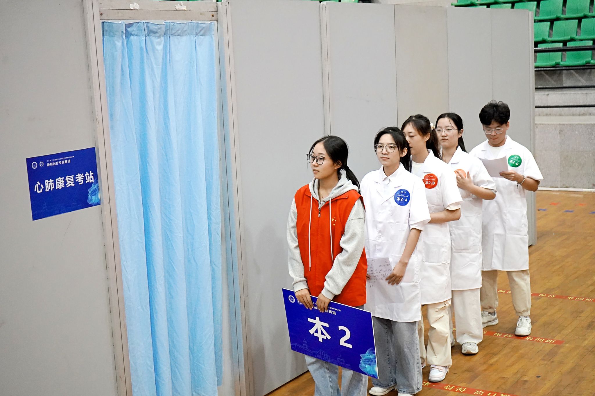 本次大赛采用“理论知识竞赛+多站式技能操作竞赛”的方式进行考核,综合考察学生专业技能和基本素质,并且在上一次大赛经验基础上进一步创新实践,如理论考部分创新采用机考现场出分大大加快了计分进度,技能考四站实行队员身份轮换制,增加了对队员技能考察的全面性。赛题覆盖神经康复、肌骨康复、心肺康复和儿童康复四个方面的内容,全面考察了学生的临床思维、临床决策能力、团队合作、人文关怀和医患沟通等综合能力。选手们在多站式技能操作中,遵循操作规范,以精准的操作和严谨的态度,展现了专业素养。裁判员们公正严明,细致入微地评估每位选手的表现,确保了比赛的公平性。