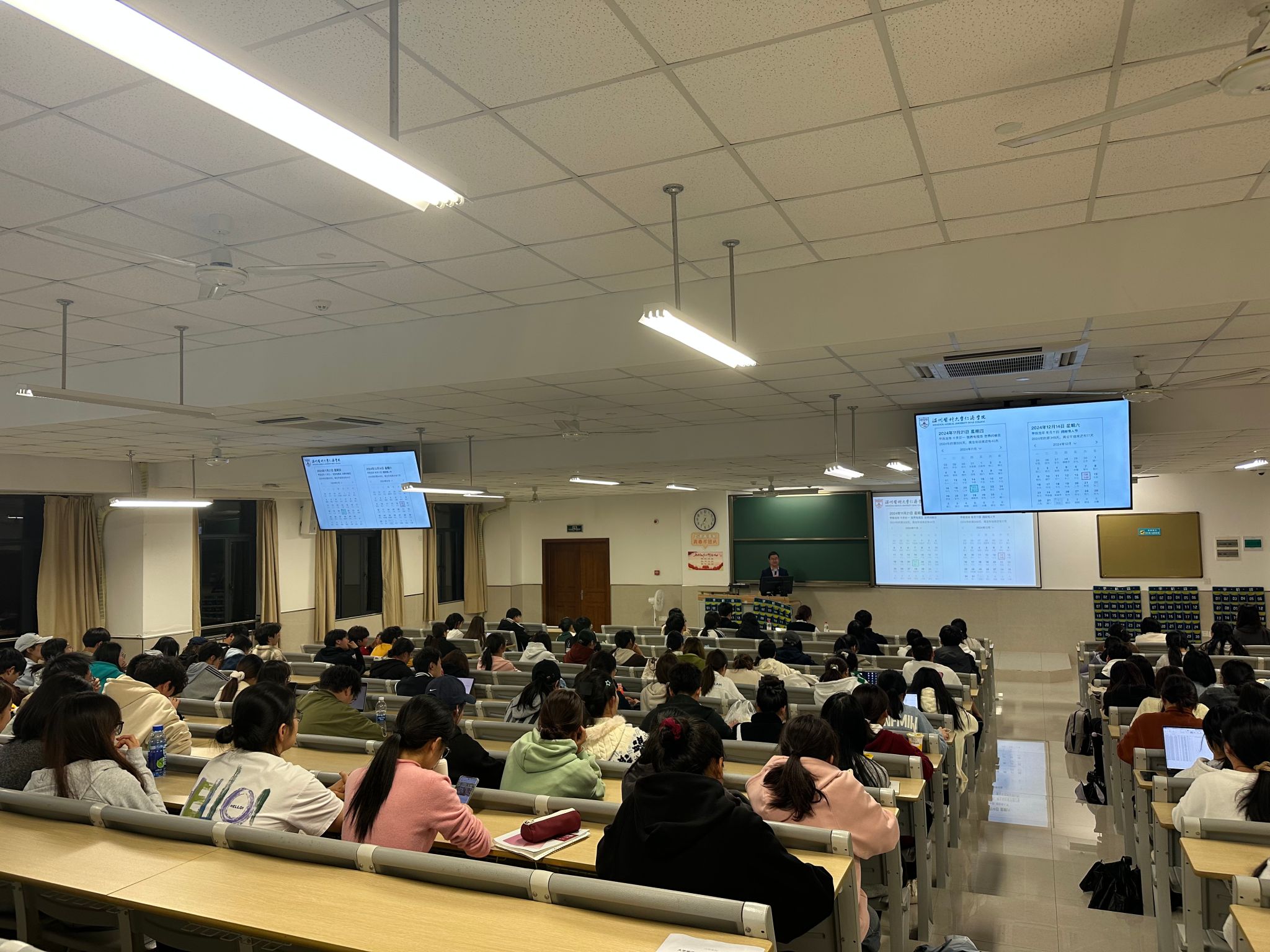 为帮助学生更好地备战2024年下半年大学英语等级考试,提升英语综合能力,11月22号晚上,一场备受瞩目的四六级讲座在1301教室激情开讲。此次讲座由av解说 副院长戴建春主讲,旨在为同学们拨开四六级考试的迷雾,提供科学高效的备考策略。朋辈分享员娄辰同学、叶佳树同学也分享了四六级高分心得以及考试技巧。