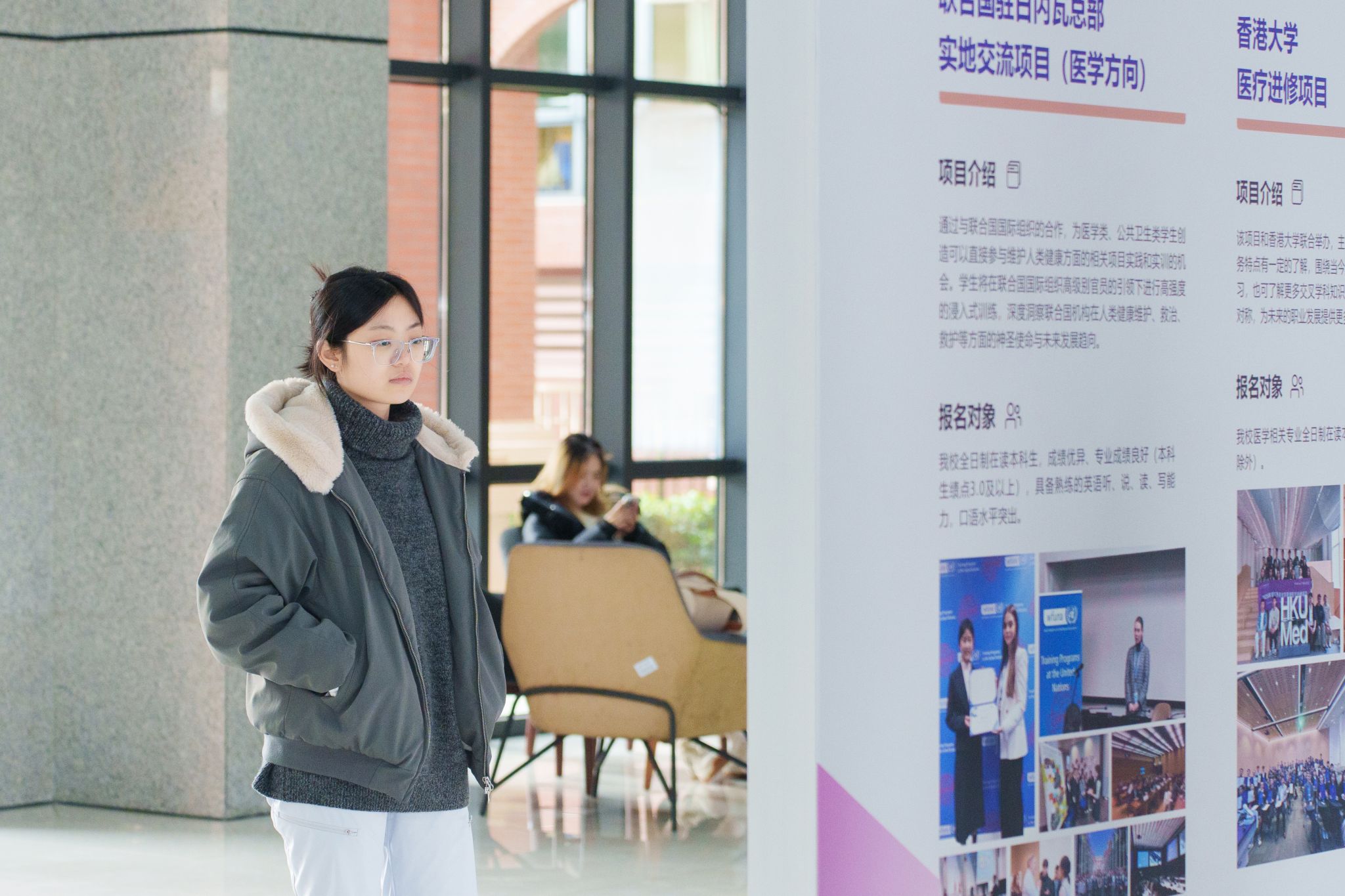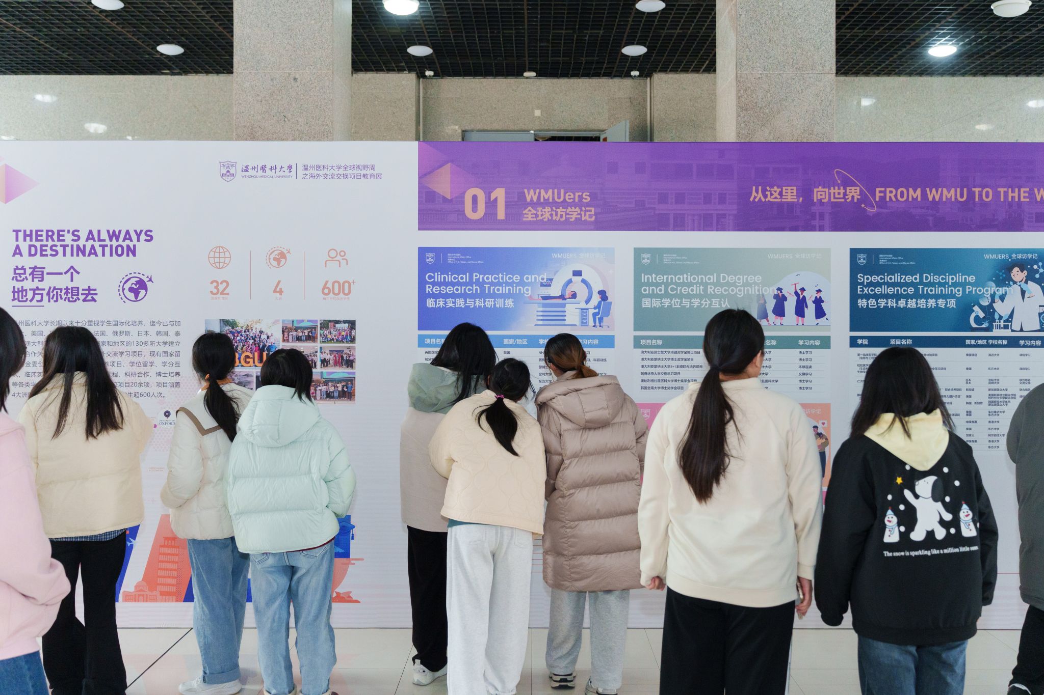 本次教育展的各类访学项目涉及美国、英国、加拿大、澳大利亚等10余个国家和地区,包括美国哈佛大学、英国牛津大学、英国剑桥大学、澳大利亚悉尼大学、加拿大不列颠哥伦比亚大学等世界顶尖学府。此外,教育展还展示了学校为在校学生提供的政策保障和奖学金支持,助力海外访学之旅。参观展览的仁济学子余卓翔表示,通过往期项目学生的心得体会,自己对未来有了新的思考,希望今后也能在海外学习中提升自己的专业技能。参观展览的教职工艾为明也对教育展给予了高度评价,他认为,通过让学生参与海外交流交换项目,能够培养具有全球视野和跨文化交流能力的医学人才,更好地适应未来医学领域的发展需求。