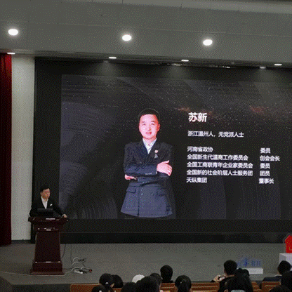 苏新董事长以“实业报国与青年担当”为主题,结合自身二十余年创业经历,展开了一场真挚而深刻的分享。他讲述了天纵集团从传统服务走向智慧创新的发展历程,强调“企业成长必须与时代同行、与国家共进”。面对在座的医学生,他特别指出:“医疗健康是民生之本,也是创新沃土。未来的医学人才不仅要精于医术,更要心怀天下,在健康中国建设中找准方位、贡献力量。”他鼓励青年学子树立“利国利民”的初心,在专业学习中厚植情怀,在实践锻炼中增长才干。
